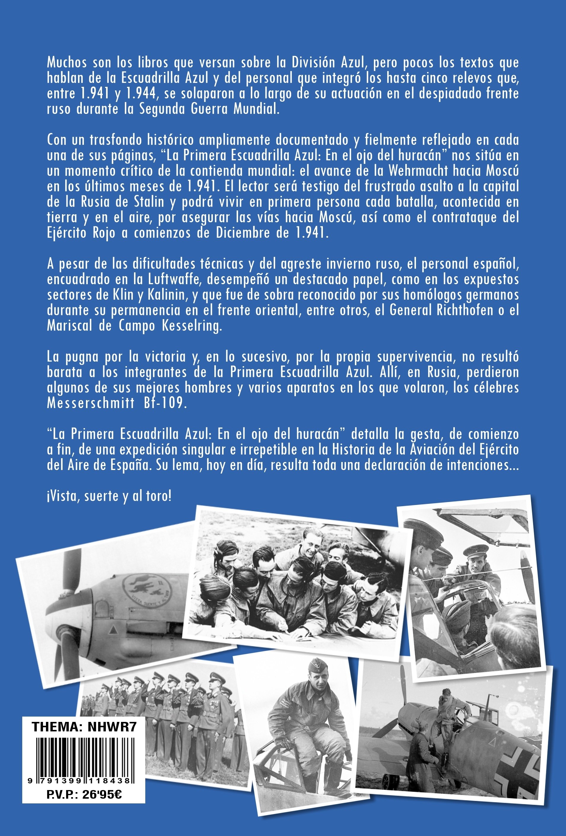 Muchos son los libros que versan sobre la División Azul, pero pocos los textos que hablan de la Escuadrilla Azul y del personal que integró los hasta cinco relevos que, entre Julio de 1.941 y 1.944, se solaparon a lo largo de su actuación en el despiadado frente ruso durante la Segunda Guerra Mundial.
